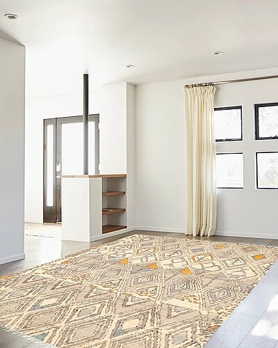 - Abstract And Modern Transitional Rug, Hand Knotted With Elegant Colors And Tribal Designs.