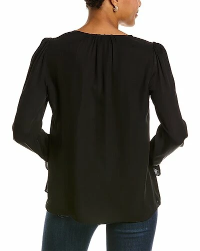 - Bolona Blouse in caviar with balloon sleeves and elasticized flounce cuffs
