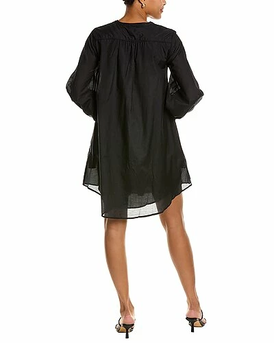 - Delpres Silk-Blend Mini Dress in black with embroidered piping, button cuffs, shirred detailing, and side seam pockets