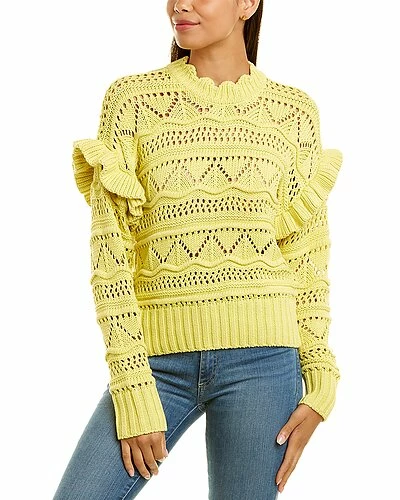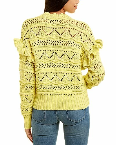 - Hockley Sweater in canary yellow with pointelle detailing, ruffle trim, dropped-shoulder sleeves