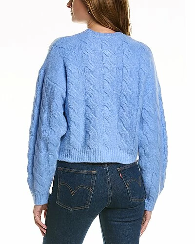 - Hyannis Crew Neck Wool-Blend Sweater in powder blue with cable-knit design, dropped-shoulder sleeves, and ribbed trim