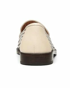 - Lilianna Leather Loafer in porcelain leather with open weave embossed detail