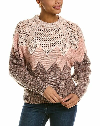 - Mikah Crewneck Sweater in pink sand with mixed knit stitch, crew neck, and dropped shoulder