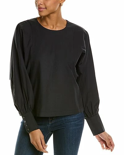 - Reyes Top in black with balloon sleeves and button cuffs